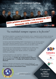 En este Máster se recogen las distintas metodologías de elaboración de perfiles existentes, actualizadas con los últimos desarrollos en este campo. En el claustro de profesores participan expertos nacionales e internacionales en esta técnica, apoyados además por el Criminal Profiling and Behavior Analysis International Group (CPBA), un grupo internacional en el que colaboran unidades de análisis de conducta de diversos cuerpos policiales.