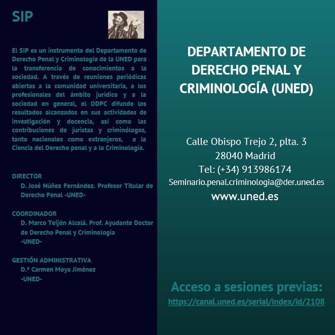 A la XXXI sesión del Seminario Internacional Permanente de Derecho penal y Criminología, que se celebrará el día 20 de mayo de 2021, jueves, de 12:00 a 14:00 horas, en sesión virtual, con el siguiente programa: