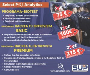 El Sindicato Unificado de Policía, renueva su concierto formativo con SelectPol Analytics, para todos sus afiliados/as (*), por el cual, se podrán beneficiar de un servicio completo e individualizado para preparar el C.B.T.P y la Entrevista Personal.