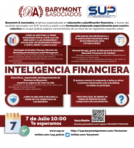 Barymont & Asociados, empresa especializada en educación y planificación financiera, a través del acuerdo alcanzado con SUP, te invita a asistir a una formación preparada especialmente para vuestro colectivo en la que podrás adquirir conocimientos de la mano de los siguientes expertos sobre:
