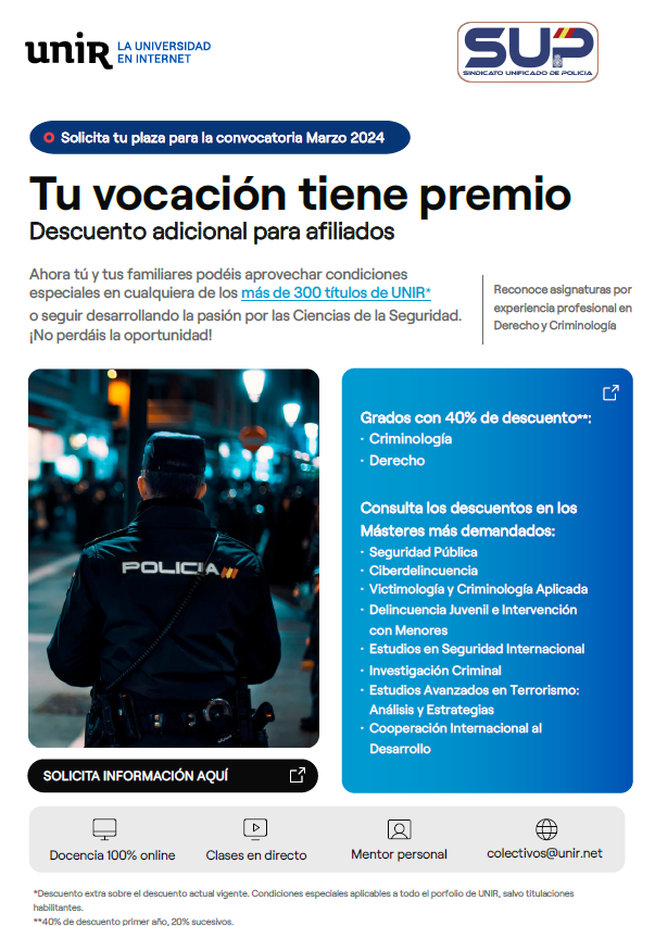 Tenemos el placer de comunicarte que UNIR ha entendido que debíamos cuidar de quienes nos cuidan y van a rebajar los precios, de tal forma que TODOS LOS AFILIADOS DEL SUP, SUS FAMILIARES HASTA SEGUNDO GRADO Y CONYUGES, PODRÁN BENEFICIARSE DE: