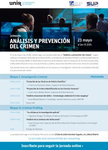 El 23 de mayo a las 09:30h, tendrá lugar en el Complejo Policial de Canillas (edificio multiusos, sala de conferencias) una Jornada dedicada al “Análisis y Prevención del crimen”, organizada por el Sindicato Unificado de la Policía (SUP), su Fundación de Estudios (FESUP) y la Universidad Internacional de la Rioja (UNIR).