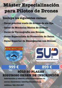 Se incluyen los nuevos MÁSTER de formación, con los cuales el piloto que los realice, adquirirá unos conocimientos muy avanzados en materia de drones, lo que para los que quieran desempeñar actividades policiales con drones, será una herramienta muy útil.