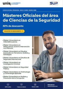 Descuento del 40% durante la convocatoria de Primavera 26 para los 8 másteres de Ciencias de la Seguridad