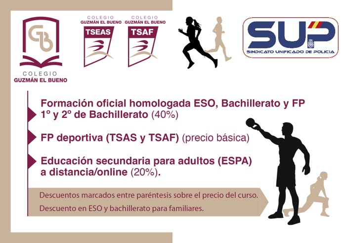 El Colegio Guzmán el Bueno ofrece a los afiliados al SUP, a los cónyuges, parejas e hijos, previa acreditación suficiente de dicha condición: