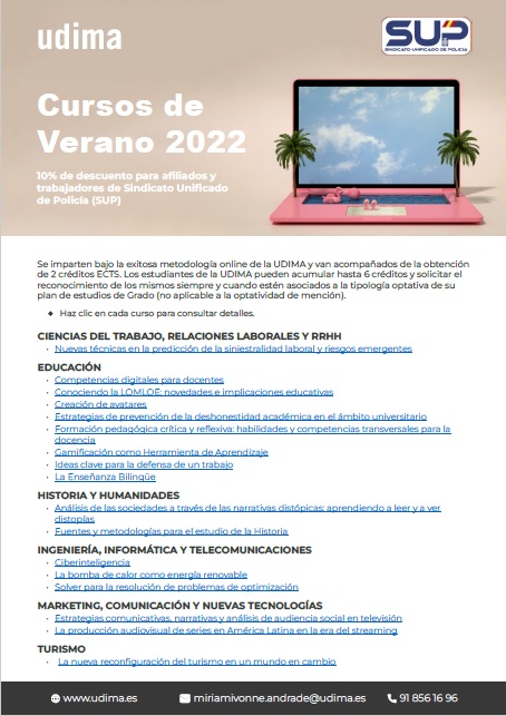 UDIMA pone a disposición de la afiliación del SUP, con un descuento del 10%, la siguiente oferta formativa: